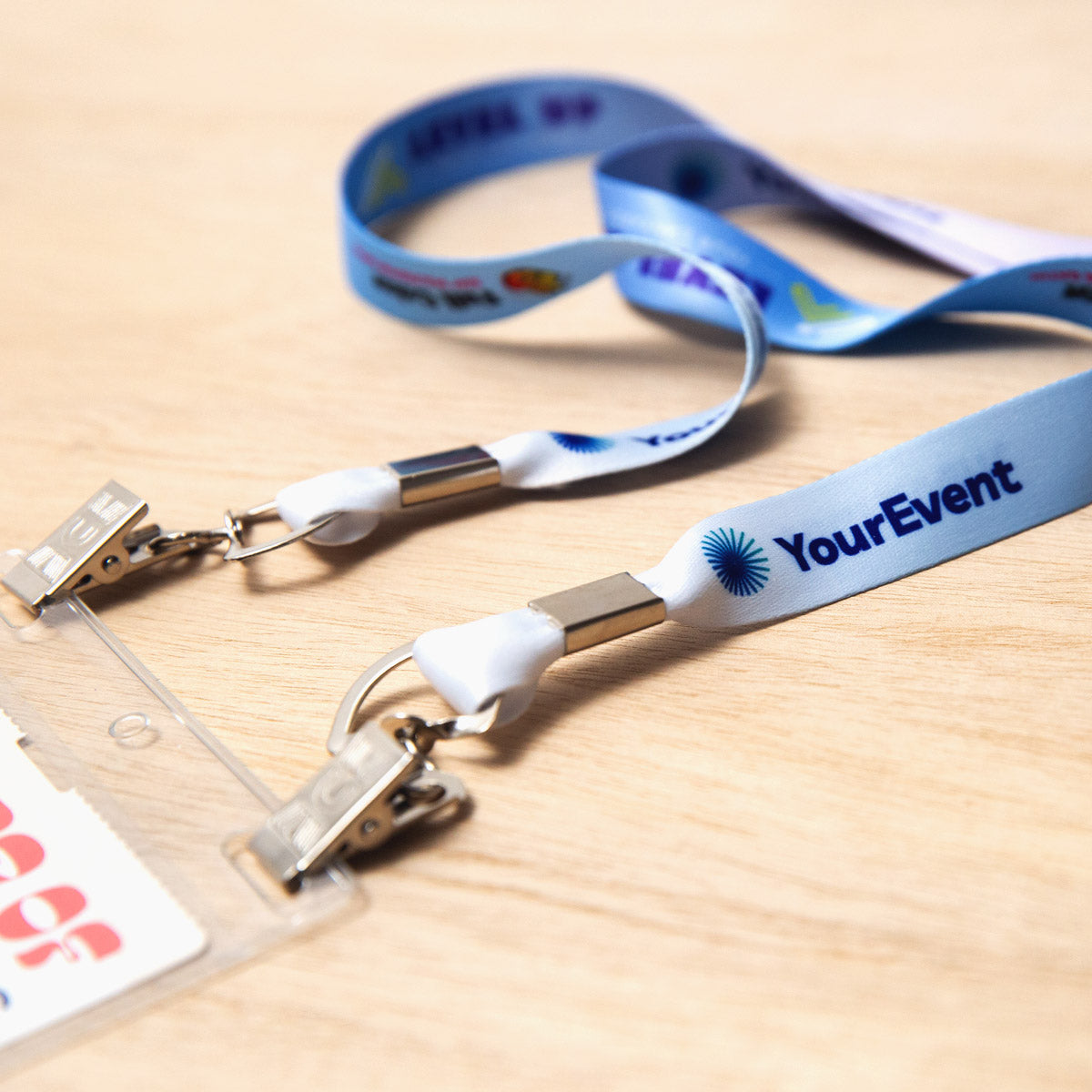 - Custom Event Badge Lanyard - Double Bulldog - 1"