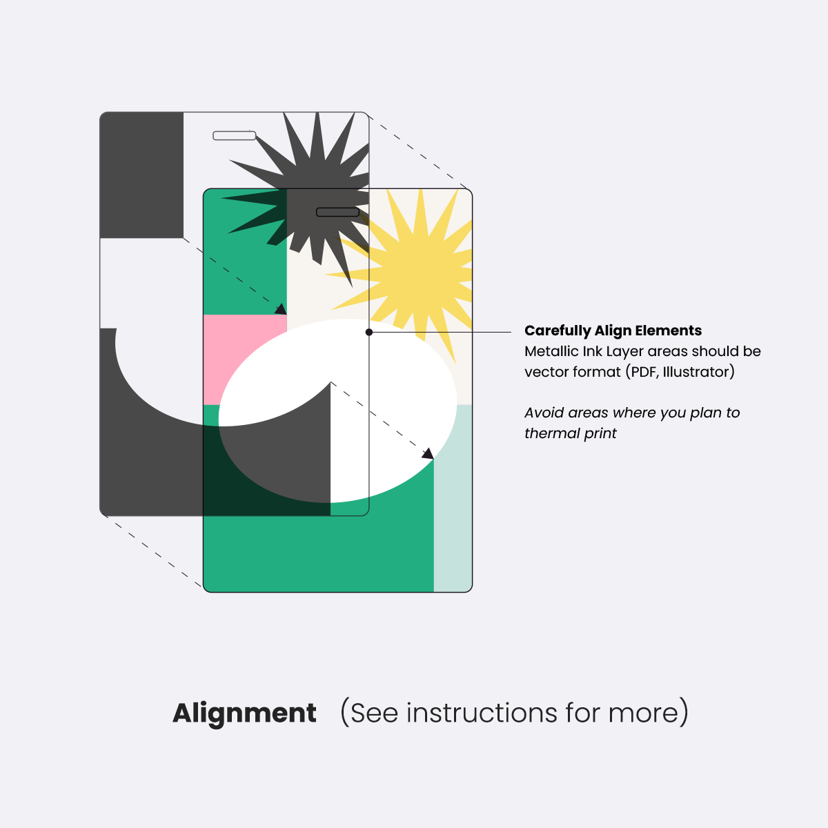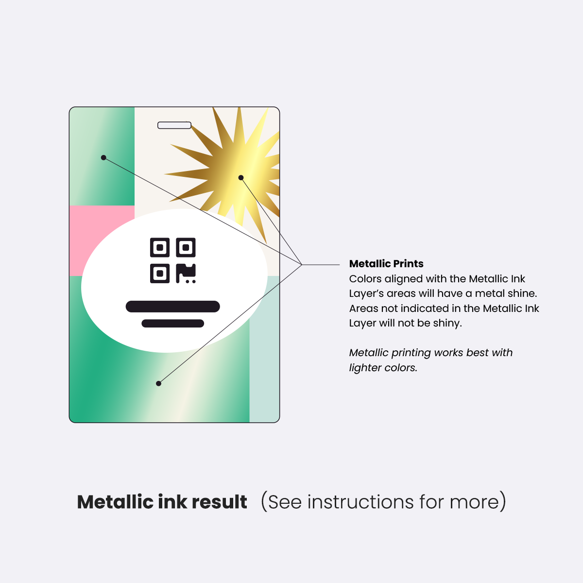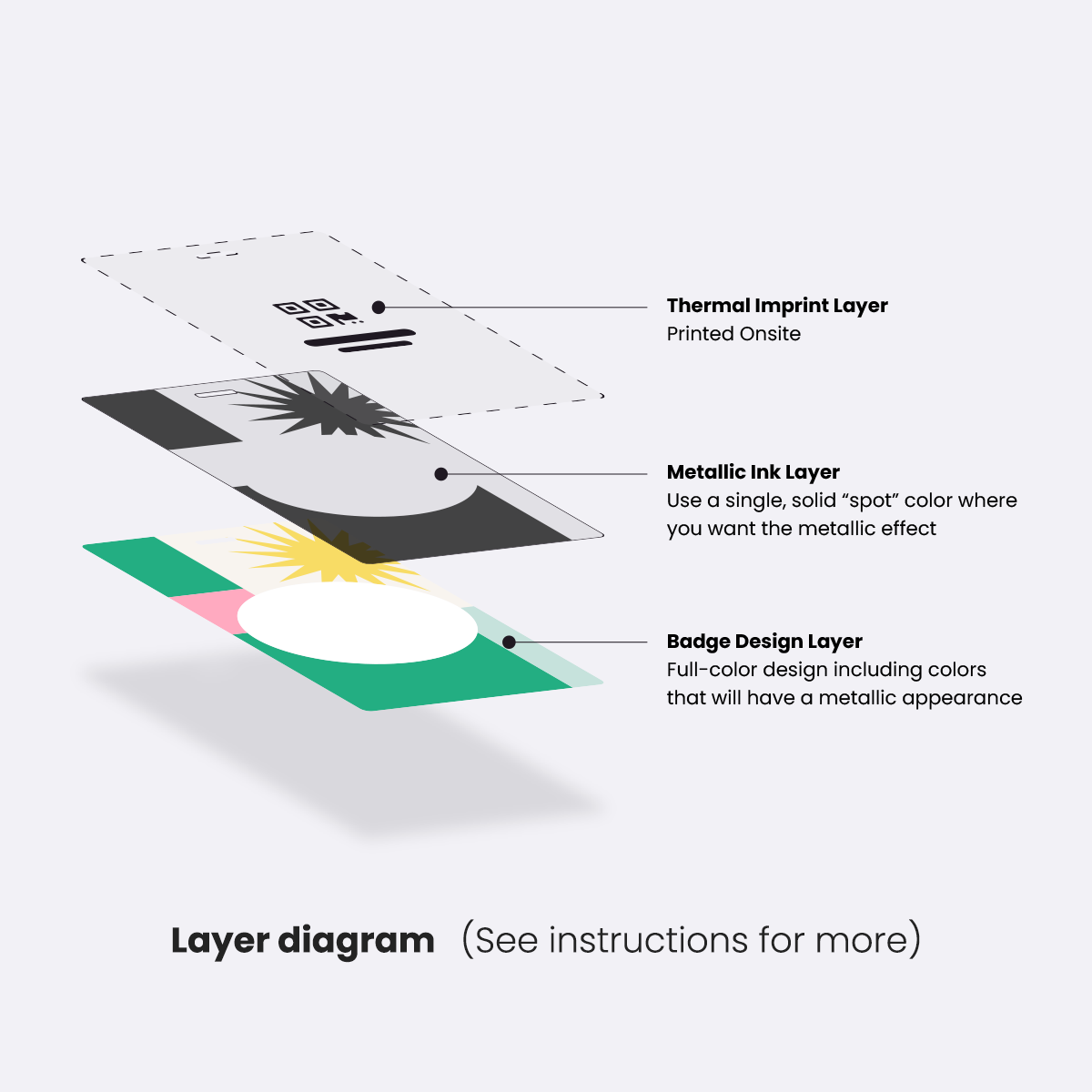 For badge orders with metallic inks, please include a design file with metallic areas on their own layer.